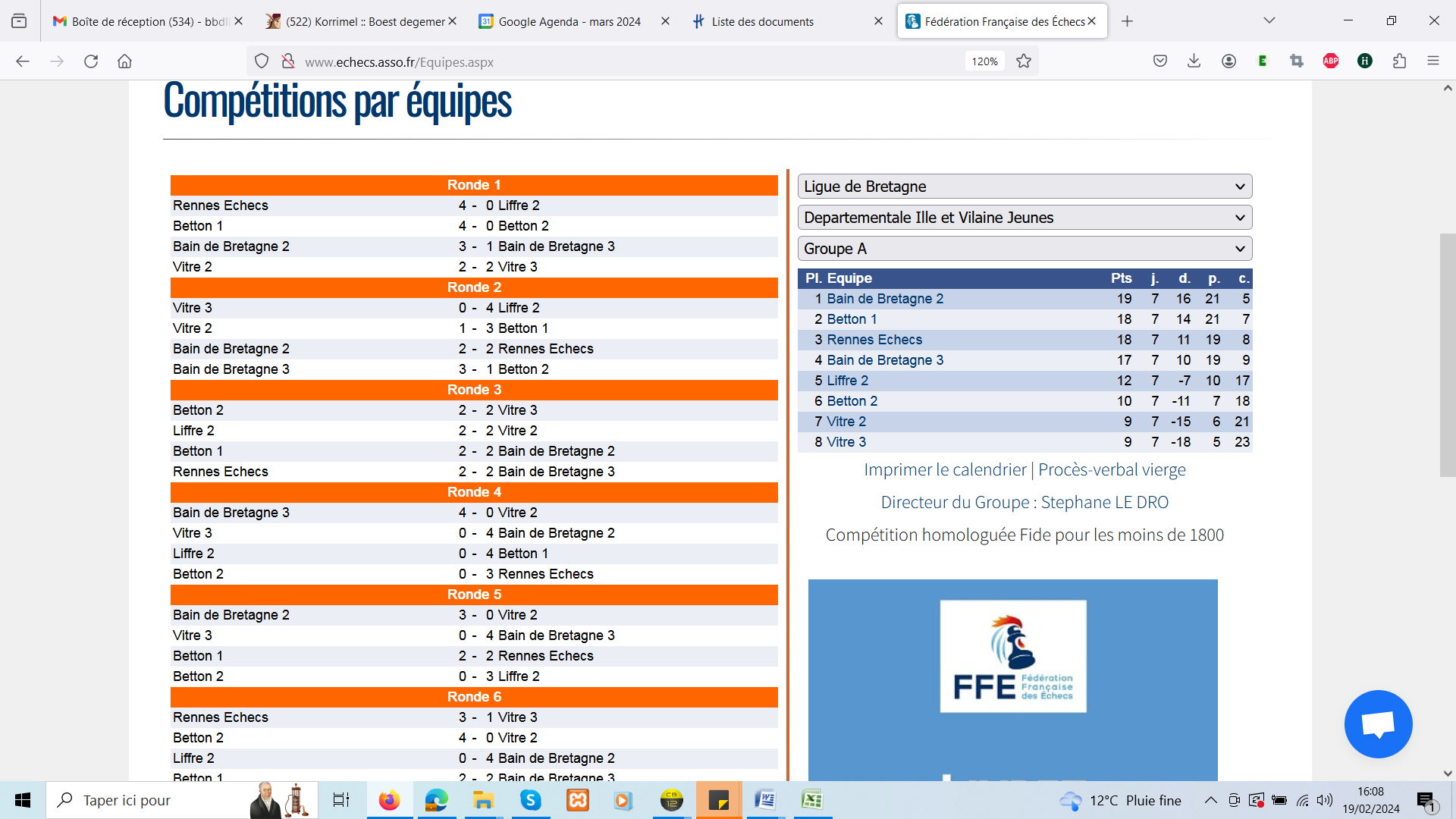 C’est après sept rondes d’interclubs jeunes disputées que notre équipe première jeune, portée par Raphaël Pernot, Virgile Targosz, Naël Bernard, Timothé Marty, Léandre Rouxel, termine à la 2eme place du classement de la division Ille et Vilaine jeunes, se faisant souffler la première place du 1 point sur 19 à la dernière ronde par la forte équipe de Bain de Bretagne alors que notre équipe avait la course en tête tout du long. Déception de notre équipe qui pensait manquer de peu la montée pour un petit de classement. Par chance, l’équipe de Bain de Bretagne refuse la montée et la place nous est offerte et acceptée, objectif de saison atteint ! Une équipe de Betton jouera donc en N3 jeunes, division à l’échelle de la Bretagne administrative, la saison prochaine.