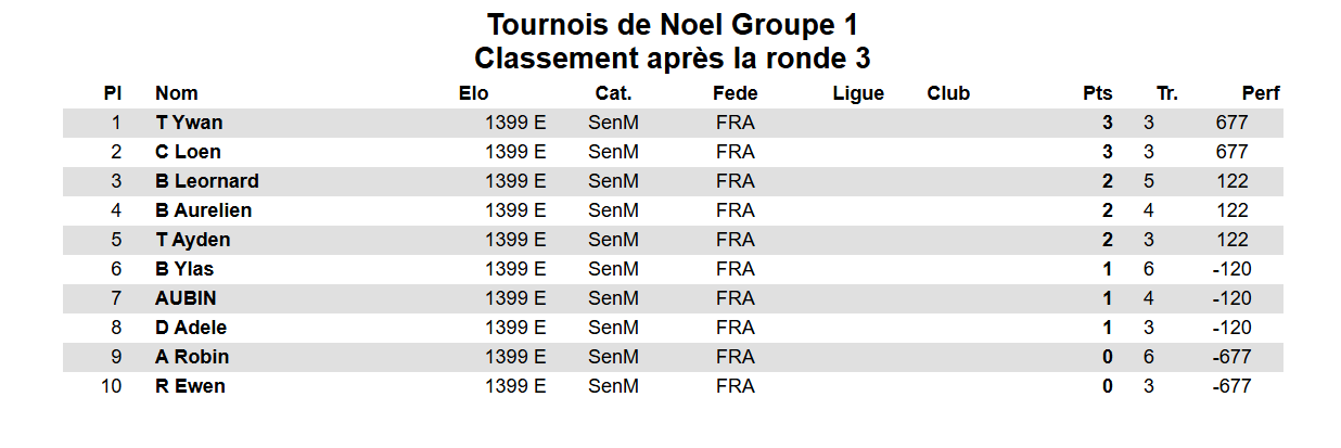 Un grand bravo à toutes et tous les participants pour l’engagement et l’esprit de jeu tout au long de ce groupe 1. Ces tournois de Noël sont l’occasion parfaite de jouer des parties sérieuses… sans oublier le plaisir d’être ensemble autour des échiquiers.